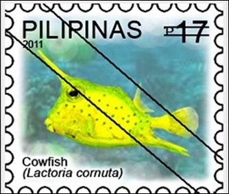 On 12 May 2011, Phil Post issued a new set of definitive stamps dedicated to the marine biodiversity of the Philippine coast. The stamps illustrate a banded vexillum, a mushroom coral, a cowfish and a pink tube sponge.